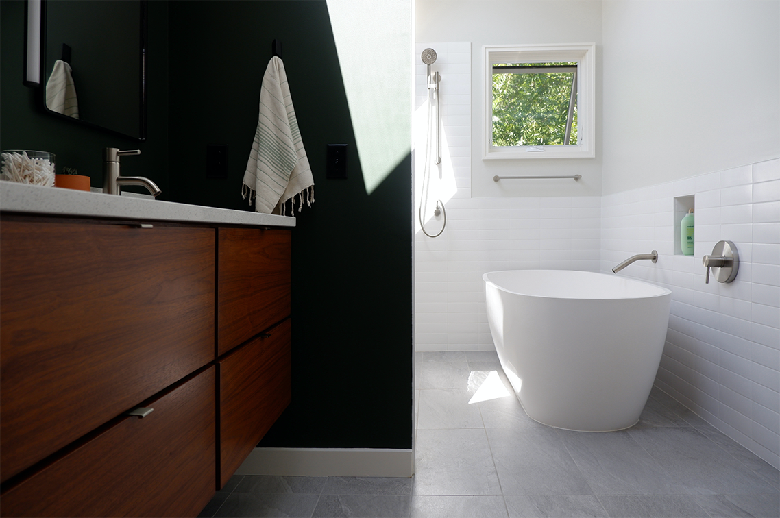 From the outset, the design intention embraced contrast: this was to be a clearly new, modern addition to the existing older home. We worked with the slope of the existing hip roof and extruded it toward the back of the house, vaulting the ceilings inside, and cladding the exterior in black metal and fiber cement panels. The couple’s love for Scandinavian design and culture influenced the feel of the space. They wanted to capture the essence of their travels to incorporate into their own home, so clean lines, thoughtful details, and inviting spaces were top priorities. Clean lines, thoughtful details, and inviting spaces were the top priorities. Budget was also a factor at every stage and every decision was made with the budget goal in mind.